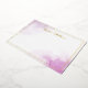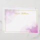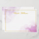Cartes de notes élégantes avec votre nom, initiales monogrammes ou autre texte personnalisé dans une police de script de calligraphie romantique sur des éclaboussures de peinture d'aquarelle violette. Véritable feuille (argent, or ou or rose).