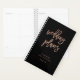 Cette wedding planner élégante et branchée présente une typographie dorée rose et moderne sur un arrière - plan noir.