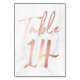 Ajoutez une touche élégante à votre réception de mariage avec des cartes de table personnalisées. Les cartes de table mariage sont dotées d'un arrière - plan en marbre blanc et d'une police de caractères en or rose. Vous trouverez des numéros supplémentaires dans la collection ci-dessous.