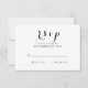 Pour les couples qui veulent une carte RSVP de mariage simple mais élégant pour correspondre à la conception de l'invitation. Elke Clarke © Le design comporte une police de script élégante associée à une police de texte brut. Affiché en noir et blanc mais peut être customisé à vos couleurs mariages pour le texte et l'arrière - plan. Ajoutez d'autres graphiques, photos ou monogrammes pour personnaliser ce modèle.