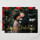 Carte photo de vacances festif avec "Happy Holidays" affiché dans un script en feuille d'or. Personnalisez la carte de vacances avec votre photo horizontale, votre accueil personnalisé, le nom de famille et l'année. La carte photo de Noël s'inverse pour afficher un motif plaid rouge et vert.