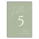 Script Whimsical | Numéro de table verte Sage
