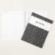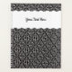 Ce planificateur a un motif damassé de rouleaux blancs en forme de losange ornés sur un arrière - plan noir. Customisez votre texte dans la bannière blanche ondulée en haut à l'avant avec le modèle.