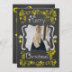 Un tableau de bord arrière - plan avec de beaux rouleaux de texte jaune et blanc qui dit "Joyeux Noël" sur le devant et "Que tous vos jours soient joyeux et lumineux" sur le dos. Cette belle carte photo de Noël customisée a plusieurs ornements étoiles, et un oiseau dans une conception de nid et des zones que vous pouvez facilement ajouter vos noms, l'année en cours, et la photo!