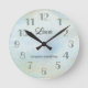 Horloge murale ornée d'un design artistique peint couleur mer avec (en option) or et turquoise pâle.