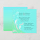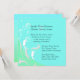 Elégante plage thème personnalisé invitation de mariage faite en aquamarine et vert menthe. Des graphiques de deux chevaux de mer blancs, des bulles d'eau et des fleurs, faits en blanc, décorent le coin inférieur gauche de l'invitation. Le texte en noir est entièrement personnalisable et prêt à être personnalisé, pour votre journée spéciale. Idéal pour les mariages à destination de la plage.