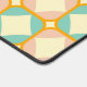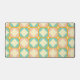 Seamless retro pattern with rounded squares in peach, teal, and cream hues, outlined in orange. Mid-century modern style, conveying a vintage, playful tone.