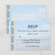 Soft Blue Seashell Beach Wedding RSVP. Grand style mariage RSVP pour les mariages de plage ou de destination. Coquillage bleu doux teinté avec un ruban bleu dentelle. Une plage de sable et un tableau parfait vagues arrière - plan pour votre mariage personnalisé. Invitations assorties, Mercis et autres produits mariages disponibles.