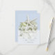 Seaside Garden menu de mariage RSVP carte d'enceinte. Grosse étoile blanche et fleur d'hydrangée blanche sur bleu clair pour correspondre à la collection design. Cette carte de réponse verticale contient du texte pour quatre ou cinq choix d'entrées en incluant simplement le groupe alimentaire, comme le boeuf, le poulet, le poisson, etc.