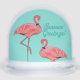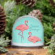 Seasons Greetings Flamingos Retro Christmas Snow Globe will add a touch of midcentury Miami color pop to your holiday decor. Perfect for your Christmas mantel display, a holiday accent for your bathroom, or a little bit of fun when you're on your patio enjoying a delightfully warm seaside Christmas Eve.