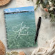 Ocean water notebook with custom text on the front. Blue-green, clear seawater photography with swirling script template for a name or title. The view is at an ocean inlet, with land and a lighthouse in the distance.