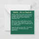 Bureau d'échange de cadeaux Père Noël Secret ou Home Green Christmas Party Petite invitation 2,5" x 2,5" Carte à Note. Taille idéale pour la remise en personne. Secret Père Noël est une tradition festive où les participants choisissent aléatoirement des noms pour devenir le Secret Père Noël de quelqu'un et ensuite acheter un cadeau pour cette personne. N'hésitez pas à personnaliser cette invitation pour vos collègues, amis ou famille. Si nécessaire, vous pouvez inclure votre nom, adresse, courriel et numéro de téléphone. Il y a également de l’espace supplémentaire à l’arrière pour plus de détails.