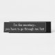 Voici une plaque drôle de bureau de secrétaire avec l'énonciation humoristique faisant des visiteurs savoir qu'ils doivent passer par le secrétaire d'abord en tant que portier du bureau de société. Les visiteurs de bureau sauront que le secrétaire n'est pas simplement un autre employé dans vos affaires.