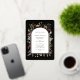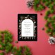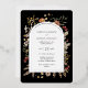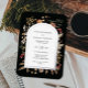 Des fleurs et des herbes d'inspiration boho entourent une véritable bordure en feuille et un espace pour inclure tous vos détails mariages. Vous avez le choix entre de l'or rose, de l'or ou de l'argent pour la bordure en arc. Changez facilement les couleurs arrière - plans pour différentes saisons ou thèmes. Quelques oeuvres de Julia Dreams Co.