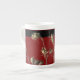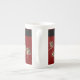 jolie porcelaine, bonne dimension effet brillant bien dans l'ensemble. Le motif et les couleurs sont réussis.Je trouve néanmoins dommage de ne pas occuper tout l'espace avc le motif car la partie rouge au dos de la tasse est trop présente et pas intéressante visuellement.