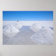 Affiche de séchage des piles de sel avec réflexion dans l'eau en attendant la récolte sur le Salar les salines Uyuni dans le sud de la Bolivie. Superbe décoration sur votre mur !