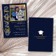 This custom graduation invitation is ideal for grad invite 2026 events, combining a timeless dark blue background with faux gold accents and a minimalist graduation cap detail. Easily personalize your graduation invitations announcements with your name, date, address, RSVP, and school details.
