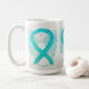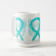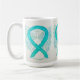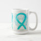 La tasse d'ange gardien présente la peinture d'un ange ruban de conscience turquoise. Sensibilisation turquoise Les tasses d'art à ruban d'ange ou les tasses peuvent être customisées de messages personnalisés pour faire de grandes tasses de cause pour les collecteurs de fonds, les cadeaux de tasse de conscience, ou d'autres événements ou occasions spéciales.