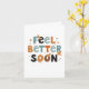 Cette carte de voeux 'get well' comporte un message joyeux et coloré qui dit "feel Better Bientôt". La police, joueuse et manuscrite, ajoute une touche personnelle, avec des lettres de taille et des couleurs différentes comme le bleu clair, le noir, l'orange et le marron. De petites illustrations à l'aide d'une bande accompagnent chaque mot, pointillées autour des lettres de la carte. Les tresses à bandes sont mignonnes, avec des tons beiges et des taches brunes. Dans l'ensemble, cette carte montre la chaleur et la positivité, parfait pour envoyer des vibes de guérison à un être cher dans le besoin. 🩹 🧡 Avec un design charmant et un message réconfortant, cette carte de voeux "Get well" vous apportera un sourire à tous ceux qui se sentent sous le temps. La combinaison d'un texte coloré et d'illustrations de fantaisie ludique crée une ambiance légère et amicale, à la fois enrichissante et sincère. Le mélange de lettres bleu clair, noir, orange et marron sur fond blanc offre un contraste visuel attrayant, attirant l'oeil et diffusant de bons voeux. Que ce soit pour un ami, un membre de la famille ou un collègue, cette carte est une façon réfléchie de montrer à quelqu'un qui vous tient à coeur et qui pense à eux pendant une période difficile. Allez-y bientôt ! 🩹 💙