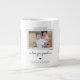 Joyeux cliché photo mug. Fonctionnalités, 3 photos encadrées avec accents lavi style scrapbook, deux lignes de texte modèles pour votre message et vos noms.