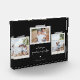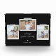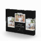 Bloc photo de sentiments gais. Caractéristiques, 3 photos encadrées avec accents de ruban lavi style scrapbook, deux lignes de texte modèles pour votre message et des noms avec détail coeur en blanc sur ardoise noire arrière - plan.