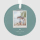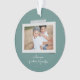 Un joyeux décor de cliché de sentiments. Caractéristiques, 2 photos encadrées avec accents de ruban lavi style scrapbook, 3 lignes de texte modèles pour votre message, noms et année avec détails coeur en blanc sur les arrière - plans de couleur bleu marine.