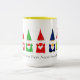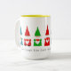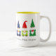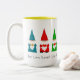Sept mignons nains de Noël sur un mug blanc. Le texte peut être personnalisé. Les nains apportent amour, chance et sagesse ! Joyeux Noël !
