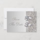 Cartes d'invitation de mariage "Save the Date" élégantes et personnalisées en argent, avec un beau motif de paillettes argentées imprimées, un joli nœud et ruban argentés brillants et un bijou diamant clinquant imprimé. Ces invitations classe, glamour et à la mode sont décorées des deux côtés. De belles invitations chic, tendance et modernes. Veuillez noter : Toutes les invitations sur Zazzle ont des images imprimées à plat. Le texte, la police et la couleur de la police peuvent tous être personnalisés. Si vous avez besoin d'aide pour personnaliser votre produit, veuillez me contacter via ma boutique. Je serai ravi de vous aider. J'ai des produits assortis dans ma boutique.