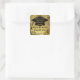 Customisez facilement et ajoutez le nom du diplômé, le nom de l'école et l'année de graduation à ces carrés populaires, élégants, formels, de beaux autocollants de graduation personnalisés, enveloppes et faveurs de fête. Ajouté est une bordure cool de paillettes d'or look à ajouter à la bling et la beauté de ces autocollants uniques! La texture dorée, riche et raffinée, est arrière - plan avec la casquette de graduation noire contrastée avec le design graphique de savelle dorée ajoute à la beauté et à la richesse de ces autocollants uniques. Parfait pour toute la classe !