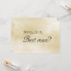 Cette carte d'invitation pour garçon d'honneur de 5" x 7" est magnifique. C'est l'idéal pour le marié. Si vous cherchez à demander à quelqu'un d'être votre garçon d'honneur pour votre futur mariage, alors pourquoi ne pas choisir cette carte pour garçon d'honneur. Cette carte d'invitation personnalisée fera sentir à votre ami, frère, cousin, neveu, fils ou qui que ce soit d'autre que vous choisirez, qu'il est vraiment spécial. Cette invitation est facilement personnalisable en cliquant sur le bouton "personnaliser" sous l'image où vous pourrez modifier le texte, la police et la taille. Vous pouvez inviter vos meilleurs amis avec style avec ces invitations élégantes. Elle convient pour le témoin ou pour les garçons d'honneur. Envoyez-leur cette carte pour garçons d'honneur.