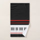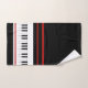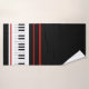 Cette serviette fantaisiste est parfaite pour les pianistes et les musiciens. L'ensemble dispose d'un clavier de piano enveloppé autour d'un arrière - plan blanc, accent noir et rouge. rayures. Le clavier Serenade dispose également d'un matelas de bain assorti, d'un kit de bain et d'un rideau de douche. L'ensemble se compose d'un linge, d'une serviette et d'une serviette de bain. Les pièces peuvent être achetées individuellement ou sous forme de jeu.