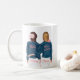 Joli "Serez-vous mon matron d'honneur" café ou tasse de thé. Présente le dos d'une mariée et de sa demoiselle d'honneur, matron d'honneur ou bonne d'honneur dans des vestes en jean avec leur nom. Une excellente façon de demander à votre ami d'être à la fête de mariage. Le libellé peut être modifié. Si vous avez besoin d'une autre couleur de cheveux, veuillez me contacter à l'adresse tkatz@me.com