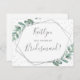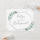 Cette carte super mignonne est la façon parfaite de demander "tu seras ma demoiselle d'honneur ?". Le design se compose d'un cadre géométrique chic en feuille d'argent avec des formulations typographiques branchées et une végétation luxuriante d'eucalyptus à l'aquarelle. Ces cartes sont faciles à customiser et peuvent être utilisées pour demander à vos proches d'être votre demoiselle d'honneur, votre servante ou votre chef d'honneur, une fille de fleurs, etc.