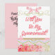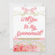 Ceci est une mise à jour sur une carte de mariage traditionnelle. Ce fun et branché, vous serez ma carte de femme de ménage faite dans les tons rose, bleu et vert fleurs abstraites, inséparables et chevron invitation votre meilleur copain à une partie de votre mariage. Cette carte est appropriée pour les couples gais ou hétéros.