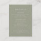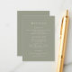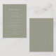 La faire-part de mariage Brooklyn présente un design sophistiqué dans une palette raffinée de sauge, lin et gris, incarnant l'élégance et la modernité. Conçues avec une police serif, ces invitations dégagent un charme intemporel, ce qui les rend parfaites pour les couples à la recherche d'un faire-part élégant mais sobre pour leur journée spéciale. La combinaison de la typographie classique et des couleurs contemporaines garantit que votre faire-part de mariage laissera une impression durable à vos invités.
