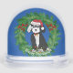Caricature personnalisée Noir et Blanc Bernedoodle Chiot portant un chapeau de Père Noël personnalisé, arc rouge avec cloches de jingle, enchevêtré dans les lumières de Noël. Fête de noël la frontière de la couronne. Ajoutez le nom de votre bernedoodle à cet adorable globe de neige de vacances !