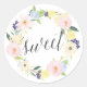 sticker Whimsical avec des fleurs pastel aquarelle et calligraphie moderne. Parfait pour les baby showers et autres célébrations.