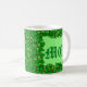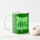 Mug dans les nuances de vert émeraude saint avec baies rouges encadrant un monogramme personnalisable avec un arrière - plan vert clair