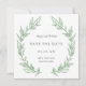 Cette belle carte verte florale Save the Date comporte une couronne dessinée à la main avec le côté verdoyant correspondant. Personnalisez avec vos coordonnées de mariage et envoyez-nous pour faire la fête de vos invités!