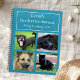 Animaux de compagnie ou marcheurs pour chien planificateur pour la nouvelle année. bleu turquoise avec deux lignes de texte blanc en haut et quatre modèles photo pour les photos d'animaux de compagnie. Les porte-photos pour chiens et chats peuvent être remplacés par vos propres photos d'animaux préférées.