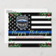 Envoyez Joyeux voeux de Noël à vos amis, aux entreprises' , aux autres services de police et à votre communauté avec cette carte de Noël unique du service de police de la Ligne Bleue Bleue - American Drapeau aux couleurs du drapeau de la police, noir et bleu moderne avec des feuilles saints et des baies. Personnalisez avec le logo, le message et le service de police. Ces cartes postales budgétaires de noël doivent être postées comme des cartes postales surdimensionnées, de sorte qu'elles peuvent encourir des frais d'affranchissement standard, mais elles n'ont pas besoin d'une enveloppe ou d'une étiquette d'adresse de retour. DROIT D'AUTEUR © 2020 Judy Burrows, Black Dog Art - Tous droits réservés. Budget Police Service Noël Mince Ligne bleue Cartes postales