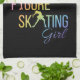 Arc en ciel Serviette de patinage pour patineuse artistique - un magnifique cadeau de patinage artistique qui est utile car il est essentiel de sécher vos lames après l'entraînement!Couleurs: Arc en ciel sur arrière - plan noir.Design: "Patineuse artistique" + silhouettes de patineuses figuratives au lieu de lettres + personnalisez avec le nom du patineur.