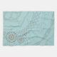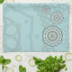 Ce design en cercle concentrique présente des couches de motifs blancs, turquoise et bruns inspirés des tissages celtes et des méthodes indiennes, comme des vignes, des rubans et des fleurs de lotus.