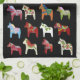 Ce design est fait de 22 chevaux de dala en bois conçus, sculptés et peints par Julia Morrill