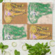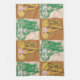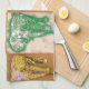Une serviette de cuisine en or et des éléphants africains verts.