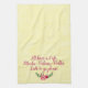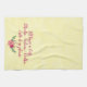 Lit la serviette de cuisine jaune doux J'aurai un Cafe-Mocha-Valium-Vodka Latte à aller s'il vous plaît en écriture rose. Ci-dessous, un joli spray de fleurs roses.
