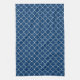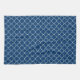 Serviette marocaine chic foncée moderne et élégante de bleu marine et blanche de quatrefoil de motif de cuisine, personnalisable avec votre propre texte ou photo, une addition unique et élégante à votre décor de cuisine.
