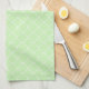 Menthe moderne et élégante de lumière verte et serviette de cuisine marocaine chic blanche de motif de quatrefoil, personnalisable avec votre propre texte ou photo, une addition unique et élégante à votre décor de cuisine.