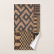 serviettes terreuses et spectaculaires. serviette, linge de toilette et serviette de bain. exotique, dramatique et audacieuse. inspiration tribale. motif ethnique. noir et marron, bronzé et ivoire.