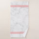 Faux marbre blanc avec veines grises et bandes roses bordent les deux extrémités.